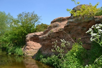 Robin Hood's Cave near Ollerton is situated on a bend in the River Maun north of the village it consists of an outcrop of Sherwood Sandstone which Robin Hood reputedly used as one of his many hideaways.