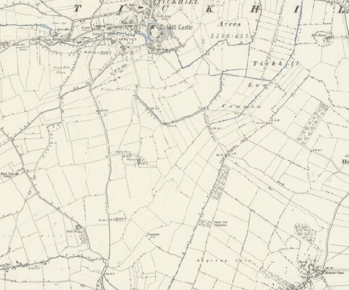 Picture: Tickhill Castle (top centre) and adjacent town, with flat land extending to the south, possibly former parkland.